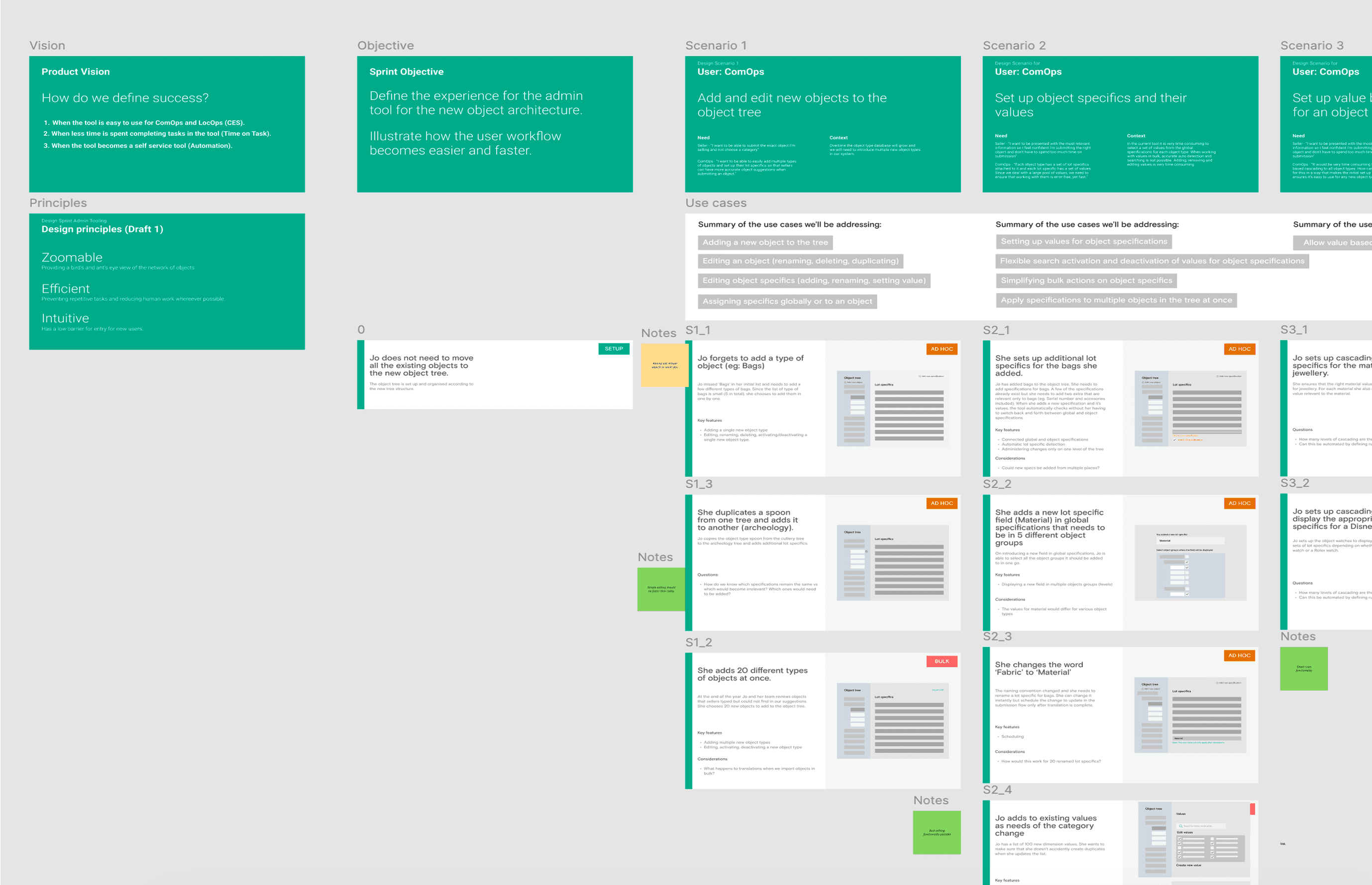 Because the tool was complex, I defined a set of key scenarios with the commercial team and engineering leads. These scenarios focused on the most critical workflows; adding new objects, editing attributes, and managing large groups.
